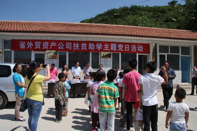 为庆祝建党95周年,推动“两学一做”不断深入,“七一”前夕,省外贸资产公司各级党组织开展丰富多彩的主题活动。特别是公司一支部“捐赠爱心书包,情暖山区孩子”的扶贫助学主题党日活动,得到了公司帮扶村两委干部和乡亲们的热烈欢迎和称赞。