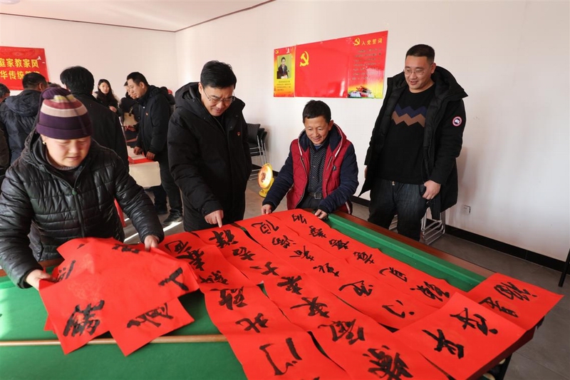 元月13-14日,公司领导班子成员、全体帮扶责任人及机关工会同志们来到涿鹿县李家堡村开展“暖心”慰问及“新春送福到农家”活动,为帮扶村农户们送去祝福与问候。机关工会组织送福下乡活动,作为公司整体活动的重要组成部分,助力2019年首次帮扶责任人入户帮扶开展。机关工会除提前为农户写好了春联、福字,并随帮扶责任人送入农户外,还现场为村民书写了一副副寓意吉祥、反映新时代新农村新气象的春联和福字,为李家堡村民拍摄了全村福照片,并应村民要求,精心创作了数十幅书法作品。冬日的李家堡村寒气袭人,红色的春联和热闹的人群让活动现场提前有了“年味”,一副副寓意吉祥,承载着美好祝福的对联和福字在村民手中传递,组成幅幅温情暖心的流动画面,为寒冬的山村增添了温暖喜庆的气氛。