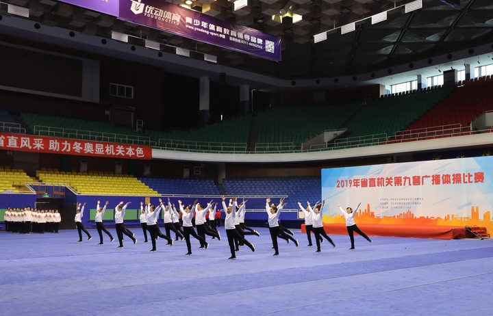 2019年省直机关第九套广播体操比赛,以推进模范机关建设和“健康省直”活动为目的,来自省直各厅局、企事业单位的43个代表队,1000余名干部职工参加比赛。(机关工会供稿)