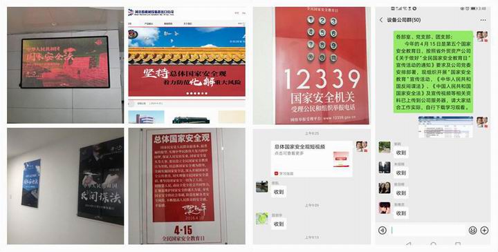为为深入推进宣传活动,4月15日,河北设备公司业务党支部、综合党支部围绕“坚持总体国家安全观,统筹传统安全和非传统安全,为决胜全面建成小康社会提供坚强保障”活动主题,开展了主题党日活动。组织党员集中学习了《反间谍法》、《国家安全法》,观看了《全民国家安全教育日宣传片》、《反间谍法微动漫》、《反间谍法公益广告》等视频资料,帮助大家更深刻明晰地了解掌握相关法律法规,营造了维护国家安全人人有责的良好氛围,引导党员干部不断提升国家安全意识,自觉维护国家安全。