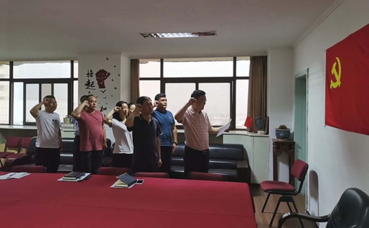 在“七一”来临之际,张元贞同志还带领东方国际第二党支部全体党员在党旗下重温了入党誓词。(东方国际服装中心供稿)