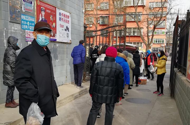 河北设备员工在所在社区组织居民排队采买蔬菜等生活必需品