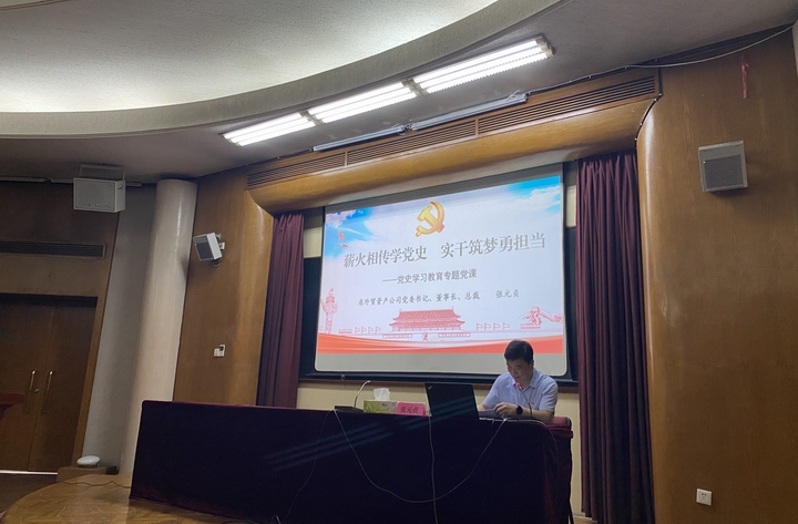 6月24日,省外贸资产公司党委书记、董事长、总裁张元贞以《薪火相传学党史 实干筑梦勇担当》为题,为公司系统党员干部讲党史学习教育专题党课。公司领导班子成员,出资企业各级党组织书记、党建工作分管领导、党务工作人员纪检机构负责人及总部各党支部书记等参加专题党课。