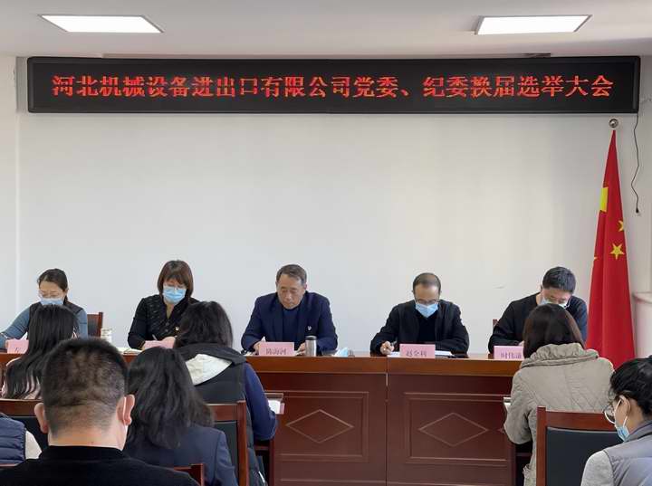 2021年12月29日,根据《中国共产党章程》《中国共产党基层组织选举工作条例》等有关规定,经省外贸资产公司党委批准,河北机械设备进出口有限公司在六楼会议室召开全体党员大会,对公司党委、纪委进行了换届选举,会议由党委书记、董事长陈海河主持,25名正式党员参加了会议。