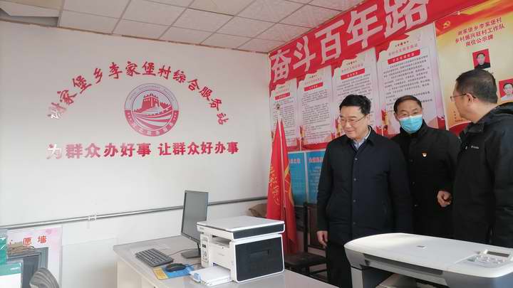 随后,张元贞在张世卿和马丽屏的陪同下,参观了新设立的村级综合服务站,听取了村党支部书记刘秀明关于综合服务站的建设情况。张元贞要求驻村工作队要利用好综合服务站平台,强化“为群众办好事、让群众好办事”服务意识,推动党史学习教育活动再深入,提升为民办事服务水平。