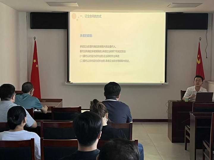 为深入学习贯彻习近平法治思想,切实做好《民法典》学习宣传,推动普法工作落到实处,进一步增强职工法治意识,提升公司法律风险防控,5月27日,河北设备公司组织开展《民法典》专题培训,邀请河北世纪方舟律师事务所表壮飞律师,为全体职工就《民法典》中合同编有关内容进行了深入解读。