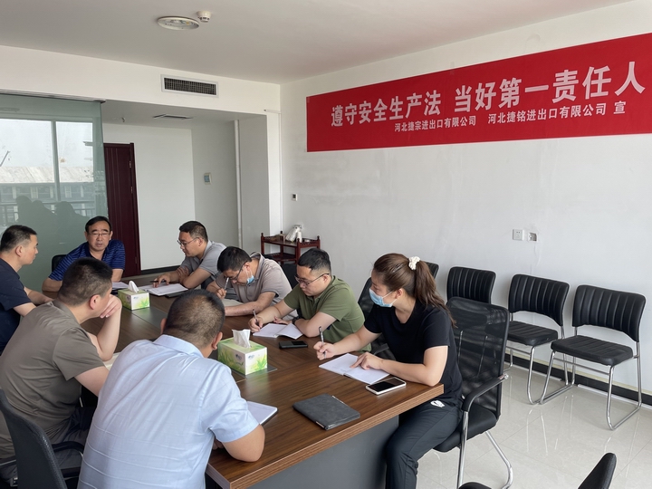 为贯彻落实省外贸资产公司《关于开展2022年“安全生产月”活动的通知》要求,根据公司计划安排,6月1日,河北捷宗、河北捷铭召开了“安全生产月”活动部署专题会暨二季度安全生产工作会议,会议由总经理聂东深主持,公司领导班子及全体员工参加了会议。