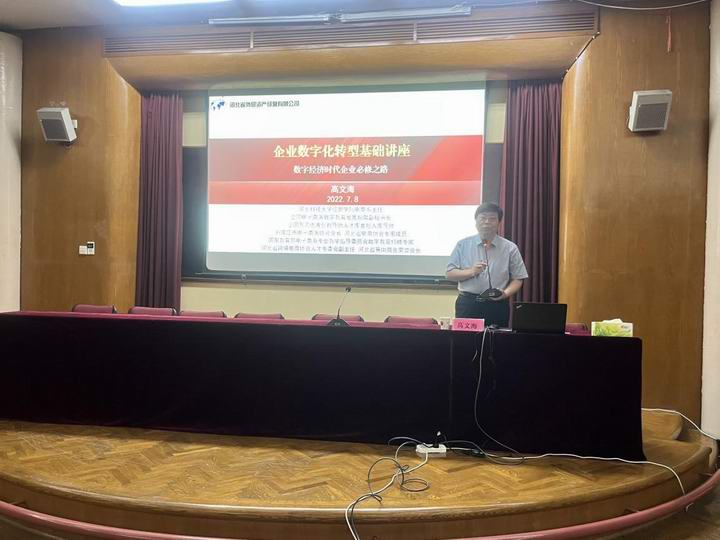 此次培训邀请了省外贸资产公司外部董事、河北科技大学教授高文海同志进行授课。高文海以“企业数字化转型基础”为题,从数字化转型为何是企业必修之路、何谓数字化转型、如何数字化转型、企业内部数字化转型路径、企业外部数字化应用案例、考察公司后的思考、国有企业推进数字化转型的总体思路等七个方面针对数字经济时代企业的发展路径进行了详细讲解,重点针对省外贸资产公司及出资企业实际为公司系统数字化发展方向提出了意见建议。