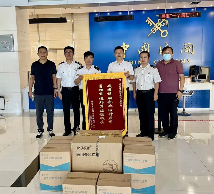 河北扬羽带着浓浓的感激和深深的敬意向一直奋战在一线的海关同志送去锦旗并送去疫情防控物资,为他们提供一份支持,也为疫情防控工作贡献企业的力量,希望他们做好自我防护,注意劳逸结合,保持旺盛精力,确保河北外贸事业的高质量发展。致敬每一位坚守岗位、奋战一线的工作人员!(河北扬羽供稿)