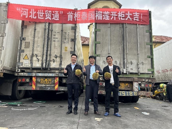 河北省世贸通进出口服务有限公司“首柜”泰国进口榴莲抵达高碑店市场