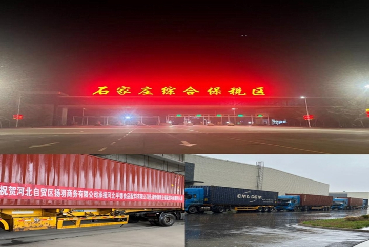 6月19 日发自天津港的 14 个集装箱车队驶入了“石家庄综合保税区”,河北自贸区扬羽商务有限公司承接的“乳清粉”保税业务落地石家庄综合保税区。