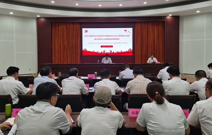 按照省国资委主题教育工作部署要求和省外贸资产公司主题教育工作安排,7月20日,省外贸资产公司党委书记、董事长以“坚持不懈用习近平新时代中国特色社会主义思想凝心铸魂奋力谱写企业高质量发展新篇章”为题,为系统广大党员干部讲授专题党课。公司领导、各企业党组织书记、党建分管领导、总部中层以上管理人员、公司各主题教育巡回指导组组长共计50余人参加会议。会议由党委副书记齐山水主持。