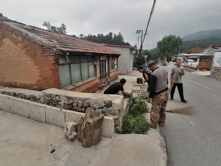 洪水过后,为防止疫情发生,组织村里十几名留有人员进行街道垃圾清理、残墙落石消除,排查安全隐患,对全村进行全面消杀。