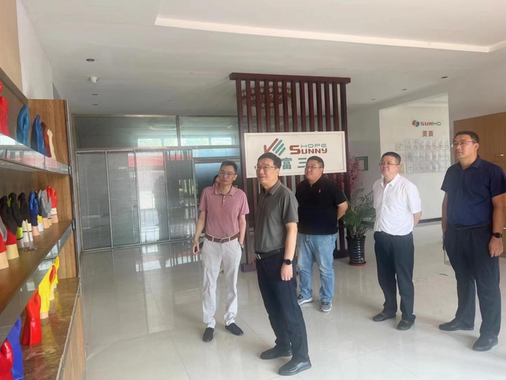 8月15日,省外贸资产公司党委书记、董事长张元贞到辛集市汇富三合劳保用品有限公司(简称:汇富三合)考察。省外贸资产公司副总经理、河北欣润党支部书记、执行董事、总经理陈星参加考察。