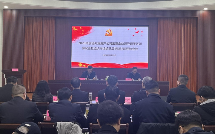 1月18日,省外贸资产公司组织召开2023年度出资企业领导班子述职暨党组织书记抓基层党建述职评议会议。省国资委党建处车继彪副处长到会指导,公司党委书记、董事长张元贞主持会议并讲话。