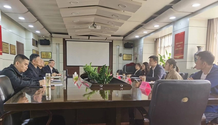 呼和浩特市综合保税区经济发展局局长刘亚楠、经营发展部部长魏斌和内蒙古金素公司负责人及相关人员陪同交流洽谈。(经营发展部供稿)