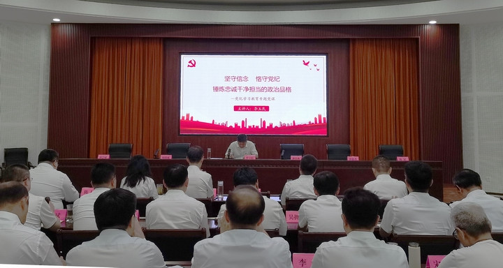 在热烈的掌声中,公司党委副书记、副董事长、总经理李玉民以“坚守信念 恪守党纪 锤炼忠诚干净担当的政治品格”为题,从“深刻认识党纪学习教育的重要性、明确党纪学习的重点内容、注重党纪学习的实践运用”三方面,为公司系统党员干部讲了一堂生动的党课,旨在通过学习教育以及案例教学,进一步深化公司系统党员干部对党纪重要性的认识,提高遵规守纪的自觉性,以案促学、以案促改、以案促治,为公司健康稳健发展提供坚强纪律保障。